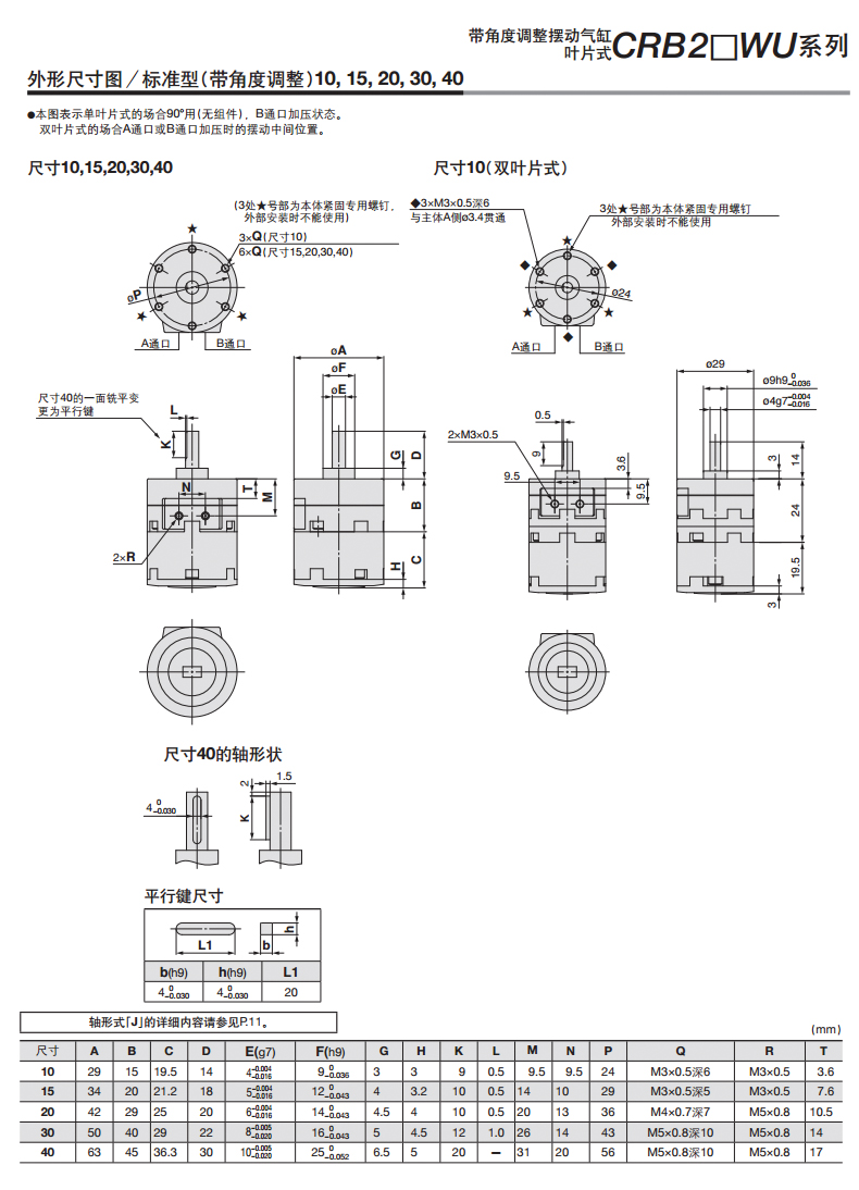 CRB2BW30-90SZ 摆动气缸 CRB2系列 叶片式
